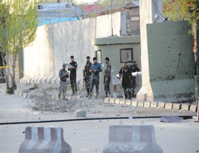 | 在阿富汗喀布尔 警察在爆炸现场附近警戒 |