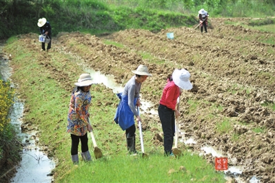 13日,赤壁市茶庵岭镇八王庙村2组,农户正在田间忙碌,为栝楼种植做准备。