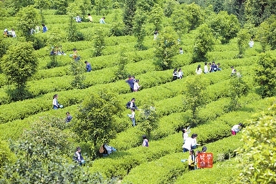 4月13日,咸安区环城小学近700名学生前往汀泗桥镇黄荆塘村茶叶基地开展研学旅行活动,体验采摘春茶的乐趣。