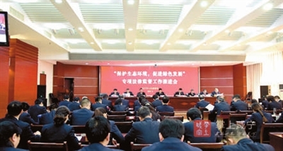 本报讯 通讯员李蔓报道: 4月14日上午,咸宁市检察院召开“保护生态环境,促进绿色发展”专项法律监督工作电视电话推进会。