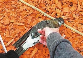 据悉,这只喜鹊名叫麦琪,从视频中可以看到,最开始它独自站在一堆木屑中,然后一名男子向它伸出了手,想要抚摸它。麦琪先是试探性地啄了几下男子的手,然后就让男子把自己翻了个身,抚摸自己的肚子。整个过程麦琪用爪子抓着男子的手指,显得很享受。