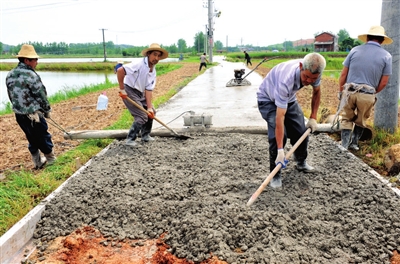 10日,嘉鱼县陆溪镇官洲村村民正在修建一条长2.8公里、宽3.5米的乡村公路,将连接六、七、九三个小组。