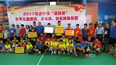 本报讯 记者汪俊东、通讯员黎碧波报道:5月21日,我市2017年度青少年儿童田径、乒乓球、羽毛球项目锦标赛在温泉圆满落幕。本次比赛由市体育局、市教育局联合主办,共有24支代表队、335人参加比赛,其中,田径7支、乒乓球8支、羽毛球9支。