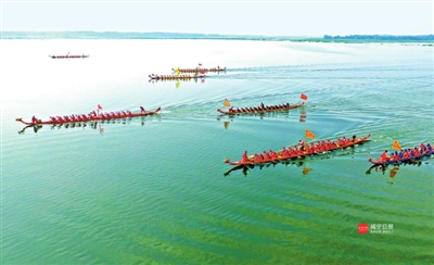 5月30日,农历五月初五,端午节。艳阳高照。西凉湖碧波荡漾,湖区周边咸安、嘉鱼、赤壁各乡镇群众自发组织的百余艘龙舟,在广阔无垠的湖面上尽情飞渡。