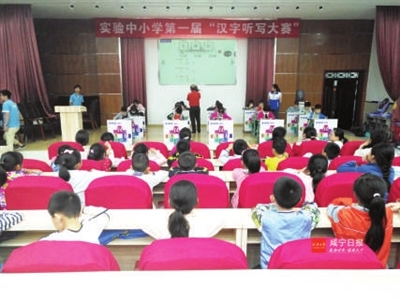5月23日下午,咸安区实验中小学小学部举办了“步步高杯·我爱汉字”听写大赛,来自全校的200多名学生和家长观看了比赛。 通讯员 周兵华 摄