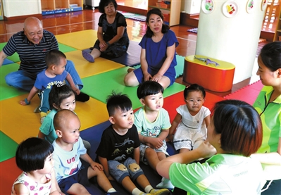 5月31日,家长和孩子们在北京中国儿童中心上早教课。