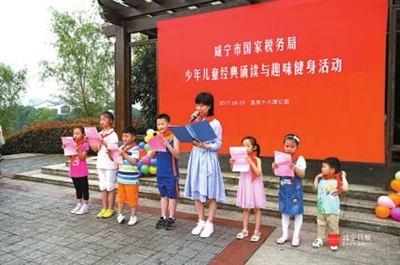 3日上午,市国税局在温泉十六潭公园举办少年儿童经典诵读与趣味健身活动,旨在增强少儿成长的信心和勇气,促进国税机关家庭文化建设与和谐家风建设。