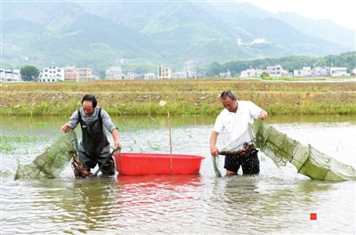 近两年来,该县坚持把发展小龙虾产业作为推动精准扶贫的重要抓手,通过组建水产养殖合作社,引领养殖大户带动贫困户以荒芜田、冷浸田入股分红或参与生产经营等方式创收致富。截至目前,全县已带动1100多户贫困户发展小龙虾养殖1万亩,亩平收入3000多元。