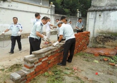 约莫又过了半个小时,散落的砖头清理干净,一面整齐的红墙也码立了起来。虽然挺辛苦,刘胜与队友却感觉挺满足,因为今天的清理工作挺顺畅。
