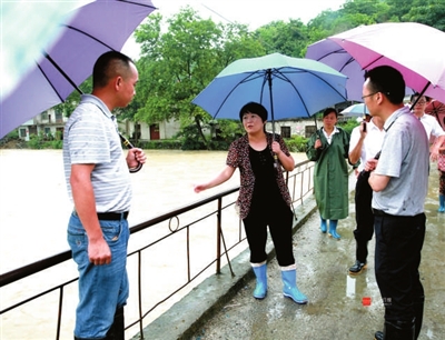 杭莺来到现场加强督导,要求加大宣传力度,组织沿河乡镇群众撤离河堤,做好安全防范,确保生命财产安全。