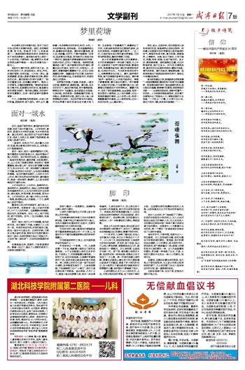 朱自清先生的《荷塘月色》,写尽了他日日走过的那片荷塘的柔美。读时,总觉得那荷塘、那月色、那蛙声于我“心有戚戚焉”——竟是那般的熟悉和亲切,那般的依恋不舍和刻骨铭心,像早就纠结在心底的一个乡思的结,只要轻轻一碰,酽酽的乡思便会泼洒出满怀情绪——故乡的荷塘与此一般无二。