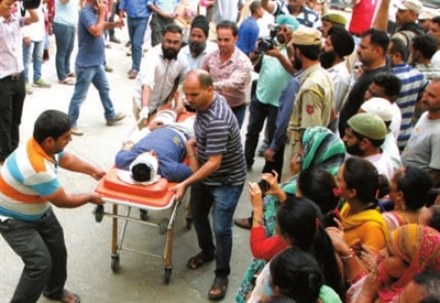 7月16日,救援人员在印控克什米尔地区转移客车坠谷事故伤员。印度警方说,一辆满载印度香客的客车当天在印控克什米尔地区坠入山谷,至少16人丧生,另有19人重伤。 据新华社