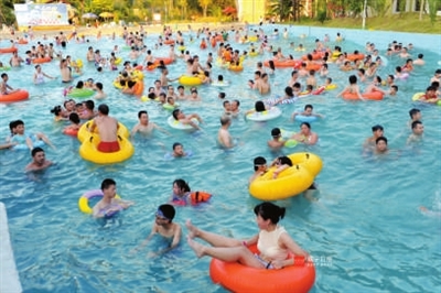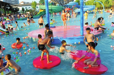 昨日,十六潭公园水上乐园迎来旺季。连日来,我市持续高温天气,最高温度直逼40度,进入“烧烤”模式。市区各处水上游乐设施爆满,市民在持续高温天气里享受戏水乐趣。 记者 陈红菊 摄