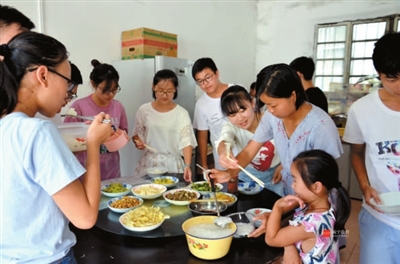 陈创介绍每天要买菜,安排14人的伙食,生活费由大家筹集,统一由他这位 “后勤部长”操劳。他说,山村家长很客气,有的将自家种的黄瓜、豆角送来,还有的送来土鸡蛋,当执意不收时,家长像打架似的,称老师辛苦了,放下东西就跑。
