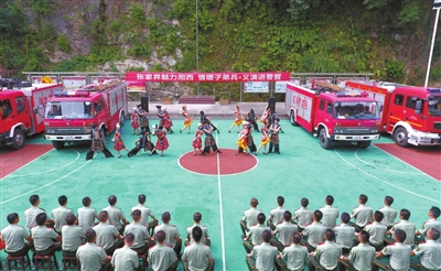 当日,湖南张家界魅力湘西艺术团组织演员走进驻地公安消防大队、武警中队,开展“情暖子弟兵 义演进警营”慰问演出和军民联谊活动,为官兵们送上节日的祝福。 据新华社