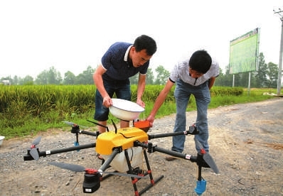 为解决种粮大户雇工难的问题,该县农业局组织植保、种植专家,引进无人机进行水稻髙产创建统防统治工作,服务广大农民及种粮大户。