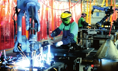 6日,咸宁厚福医疗设备有限公司员工在高温下生产。