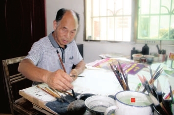 左边房间的桌子上,有一幅还没完工的花鸟画,几个瓷碗里,盛着各色颜料,粗细不等的十来只画笔插放在旁边的笔筒里。见笔者端详,老人不好意思地笑了,“中午太热了,没法做事,闲着没事,瞎画的。”