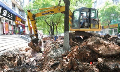 7日,在崇阳城区中津三角洲地带,一台挖掘机在开挖挖沟,为安装下水管道做准备,以解决城区内涝问题。该县实行新老城区统筹规划,中津三角洲是城区升级改造项目之一,此次改造包括排水工程、路灯照明、休闲区域、河道绿化和生态停车场等,个别人口集中、施工条件允许的地方还建设了健身区域和生态景观观赏区。