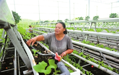 10日,通山县大路乡山口村勇利种养殖专业合作社观光采摘大棚内,农户正在拔除种植槽内的杂草,以确保蔬菜的养分供应。