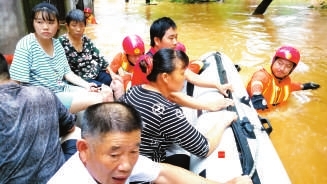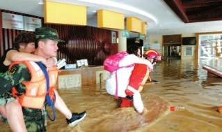 咸宁大道及周边八个主要交通路口发生积水,影响车辆和行人通行。武警咸宁支队支队长廖光明,立即带领机关前指和机动分队共五十名官兵,携带两艘皮划艇前往救援。目前已经安全转移群众三百余人。