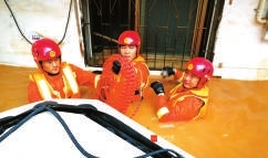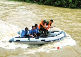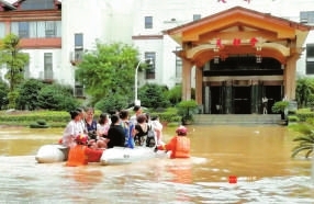 副市长、公安局长胡甲文赴桂花镇s208省道一木材加工厂,现场指挥救援被洪水困住的群众。
