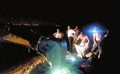 横沟河官埠段发现一处管涌,该镇正组织人员抢险。