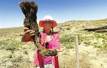 被绊倒后,蒂尔最初以为是一块石头,但是对骨骼的分析显示,这有可能是一个非常罕见的6500万年前的三角恐龙颌骨。于是,蒂尔和她的团队将骨头从泥土中挖掘出来,并最终确定这块骨头是曾经的三角恐龙的颌骨。