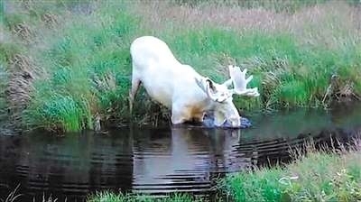 瑞士探险家汉斯苦心寻找3年,在瑞士韦姆兰省的河流岸边寻得“珍宝”——白色驼鹿真容,并拍摄下视频。视频一经上传,便引发百万点击量。据悉,相比于40万只棕色驼鹿的庞大数量,全瑞士现仅存100只白色驼鹿。
