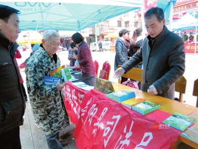 以法律“六进”活动为载体。落实全市“法律六进”一县一特色工作方案,在县医院、大集公园、电信营业厅开展“法律进单位”试点活动。先后组织开展以“网络诚信消费无忧”为主题的3·15法治宣传活动、以“反对家庭暴力,共擎和谐生活”为主题的宣传活动;5月18日,在高枧乡中学启动“珍惜青春年华、远离违法犯罪”进校园宣讲活动。开展平安创建的法治宣传活动,出动宣传车到全县各村开展平安法治创建工作宣传,提高群众的“一感二度二率”。并编写印发系列“七五”普法读本5万册,逐步形成了法治文明城市的气候。