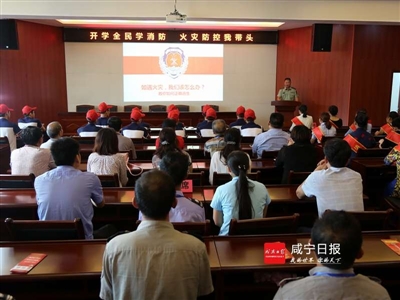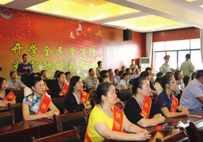上午10时,全体参与活动人员在观看了消防安全警示教育片后,消防支队林彬支队长采取“以案说法”的方式,围绕“发生火灾时毛巾有用吗?、发生火灾时可以往楼上跑吗?遇到火灾,能躲避到卫生间吗?”三个问题,给师生、楼栋长、志愿者及媒体记者们了一堂生动的消防安全知识课,向大家传授了如何正确报警、如何扑救初期火灾以及火场逃生自救等消防安全知识。他们听得津津有味,还不时报以热烈的掌声,台上台下形成了良好的互动。