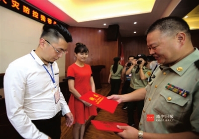 活动期间,消防支队林彬支队长为女人帮志愿消防宣传队授旗;给消防代言人通山县文化馆副馆长尹思美、通山县广播电视台主播李震宇颁发了消防代言人证书;全体参与者集体朗读了《消防宣言》。