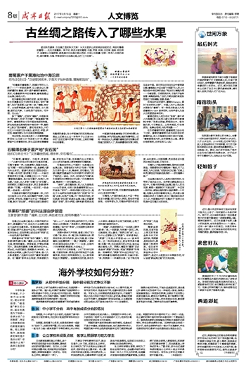 石榴是如何传入中国的?也是通过古丝绸之路。西晋陆机《与弟云书》称:“张骞为汉使外国十八年,得涂林,安石榴也。”西晋北魏贾思勰编农书《齐民要术》时便引用了陆机这一说法。另外,《初学记》“石榴”条引西晋张华《博物志》所记称:“汉张骞使西域,得涂林——安石榴种以归。”