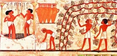 考古发现,在古埃及第十八王朝图特摩斯四世(公元前1397年至前1387年)墓室壁画中已有葡萄丰收、努比亚奴隶采摘葡萄和酿酒的景象;在今伊朗境内的尼尼微古城遗址上还曾出土过一块制作于公元前645年的“亚述王园中饮宴”的石板,上面的浮雕中也有葡萄。