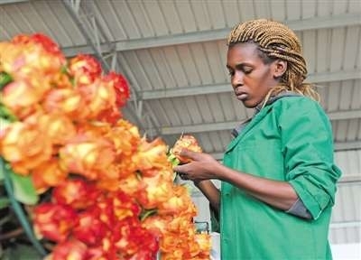 肯尼亚姑娘格雷丝在肯尼亚首都内罗毕附近奈瓦沙湖畔的一家鲜花农场筛选合格的鲜花。近年来,随着肯尼亚直飞其他国家航线的增加,从肯尼亚直接销往出口对象国的订单正逐渐增加。在中国,以往比较热销的是厄瓜多尔和哥伦比亚玫瑰,近几年,肯尼亚玫瑰正逐渐获得经销商和消费者的青睐。