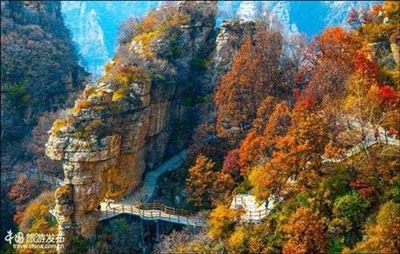 漫山遍野的巨幅画卷、宽广的蓝天分外辽阔、涤荡在巧石与悬崖间的烟云薄似轻纱、荡漾在游客脸上的笑分外耀眼、和煦温暖的日光……那份秋日所到之处的宁静祥和,让人不忍远去,只愿身在此山中。