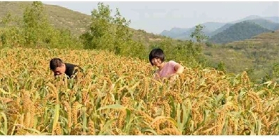 9月22日,河北省滦县杨柳庄镇中赵村农民在收获谷子。秋分将至,河北省滦县杨柳庄镇中赵村600多亩谷子喜获丰收,农民们忙着收获,田间一派忙碌的秋收景象。