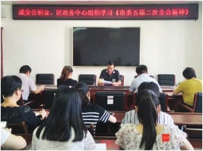 本报讯 通讯员王先柏、谢斌报道:15日下午,咸安区政务中心、公积金咸安办事处组织全体干部职工集中学习贯彻市委五届二次全会精神。