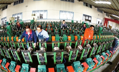 13日,湖北和乐门业有限公司厂房内一派热火朝天的生产场面。该公司总投资10.1亿元,是一家集防盗门、钢制门、智能门等多种门类的研发、生产、销售服务于一体的现代化高科技企业。目前公司首条生产线进入试产阶段,全部建成投产后,可实现年产值13亿元。 记者 袁灿 通讯员 蔡靖华 摄