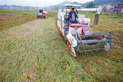 连日的降雨,导致该区4.7万亩进入成熟期的水稻出现不同程度倒伏,为减少损失,该区及时组织13家农机专业合作社、投入300多台收割机械,抢抓雨停天气抢收水稻,确保水稻颗粒归仓。
