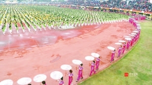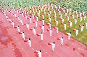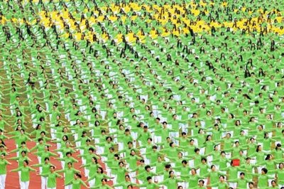 一万余名市民同穿着“你好·咸宁”文化衫,拼出“你好!咸宁”,凸显了“健康咸宁,魅力香城”的运动理念。