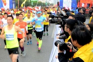 8点5分,发令枪响!万名健儿激情向前!市委书记丁小强、市长王远鹤等市领导身先士卒,一路领跑,向世界传递着咸宁的“青春、活力、责任、担当”。