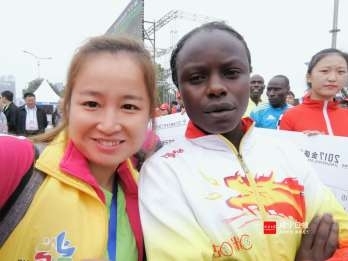 11日上午,当时间显示2小时50分0秒时,咸马B0057号选手——来自肯尼亚的女子萨拉·杰瑞普·拉加特(SarahJeropLAGAT)出现在全马终点。顿时,全场一片欢呼,很多人竖起大拇指并赞叹:“太厉害了!这才是巾帼不让须眉!”
