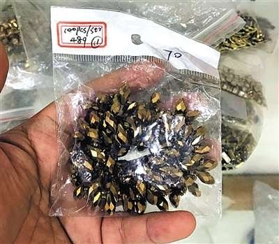 这种叫“玻璃珠”的装饰亮片是陆城公司的主营产品,印度人经常用在衣服、手包、门帘、首饰上。