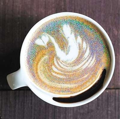 一家印度咖啡连锁店用创意卡布奇诺吸引了顾客的注意。他们不仅出售普通的咖啡,而且在卡布奇诺中加入了更加“亮眼”的成分——可食用亮片。通常情况下,卡布其诺咖啡是由浓缩咖啡、少量蒸牛奶和大量泡沫制成的。但这家咖啡店另辟蹊径,在添加牛奶和泡沫之前,将一勺可食用亮片加入浓缩咖啡中。其亮片有两种颜色,一种是金色,另外一种是名叫“钻石”的银色亮片。(本报综合)
