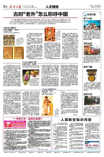 China是现代英语国家对中国的通称。古时候“老外”是怎么称呼中国的? “支那(Cina)”、“秦(Cyn)”、“秦斯坦(Cynstn)”、“赛里斯(Seres)”、“契丹(Cahtay)”这些叫法都是怎么来的?概括地说,有“地理说”和“物产说”两大类,前者认为源自中国古国或古地名,后者则称是因中国境内物产而来。过去一般认为,英语“中国”与“瓷器”都是China,所以中国之名源于瓷器,但它们其实是同词不同源。目前的主流“物产说”认为,西方语系称中国为China(英语)、Chine(法语)、Cina(意大利语)、Kina(希腊语)等均源自梵文 Cīna,都是以中国丝绸之“丝”的发音来称呼中国……