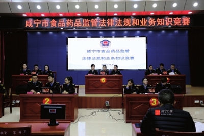 11月17日,市食品药品监督管理局在温泉举办食品药品监管法律法规和业务知识竞赛。此次竞赛有6个县市区局和市直等各组成一支代表队参加现场竞答,竞答题目分为个人必答题、小组必答题、抢答题和风险题,小组累计得分为竞答环节分值。经过几轮激烈角逐,崇阳、市直、通城三个代表队分获竞赛前三名。 通讯员 陆秋良 摄