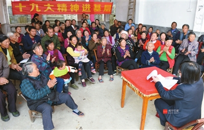 连日来,党的十九大代表、通城县法律援助中心主任续辉带着十九大报告跋山涉水忙下乡,把党的声音传达到千家万户,将党的富民政策送到老百姓手中。