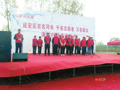 围绕河湖库长制工作,咸宁先后开展“保护淦河水源地 推进水生态文明建设”、“香城义工 保护母亲河”等活动。咸安区开展“清洁水体,呵护家园百、千、万”专项整治活动,由区总河长坐镇指挥,百名河湖库长负总责,千名志愿者带动,万名群众共同参与河湖库整治活动。赤壁市主动策划“六进”活动,印刷《河库长制工作100问》等资料,组织乡镇和志愿者开展清洁湖泊、水库、河流行动14次,吸引社会志愿者6500多人参与。通城县开展“十、百、千、万”活动,对全县十个主要河库,实行百名记者宣传、千名河长履职,万名志愿者共同参与的“爱河清河护河行动”。