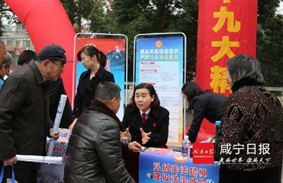 本报讯 通讯员许凤报道:12月4日上午,咸安区在银泰百货门前开展 “学习贯彻党的十九大精神,维护宪法权威”集中法治宣传和志愿服务活动。